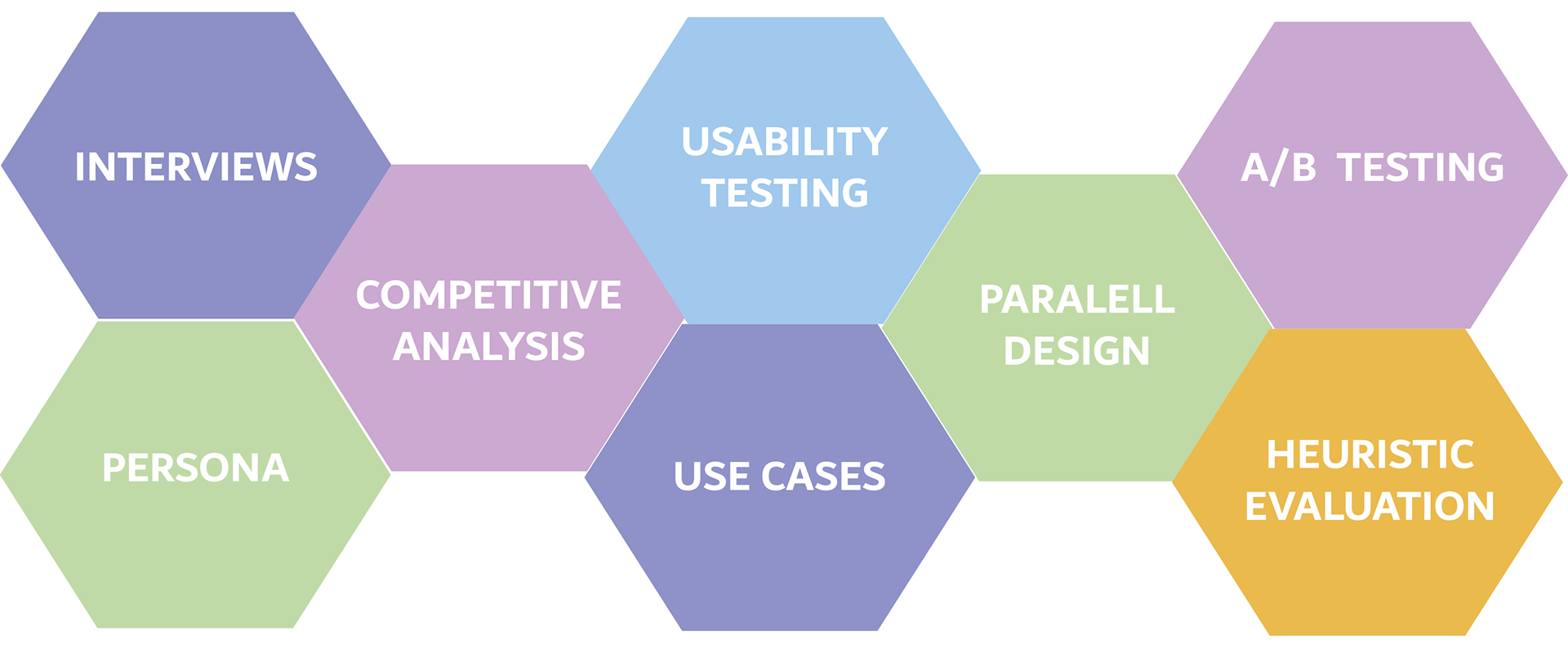User Flows, Journey Maps, Personas, Prototypes, Design Iterations and Final Designs.